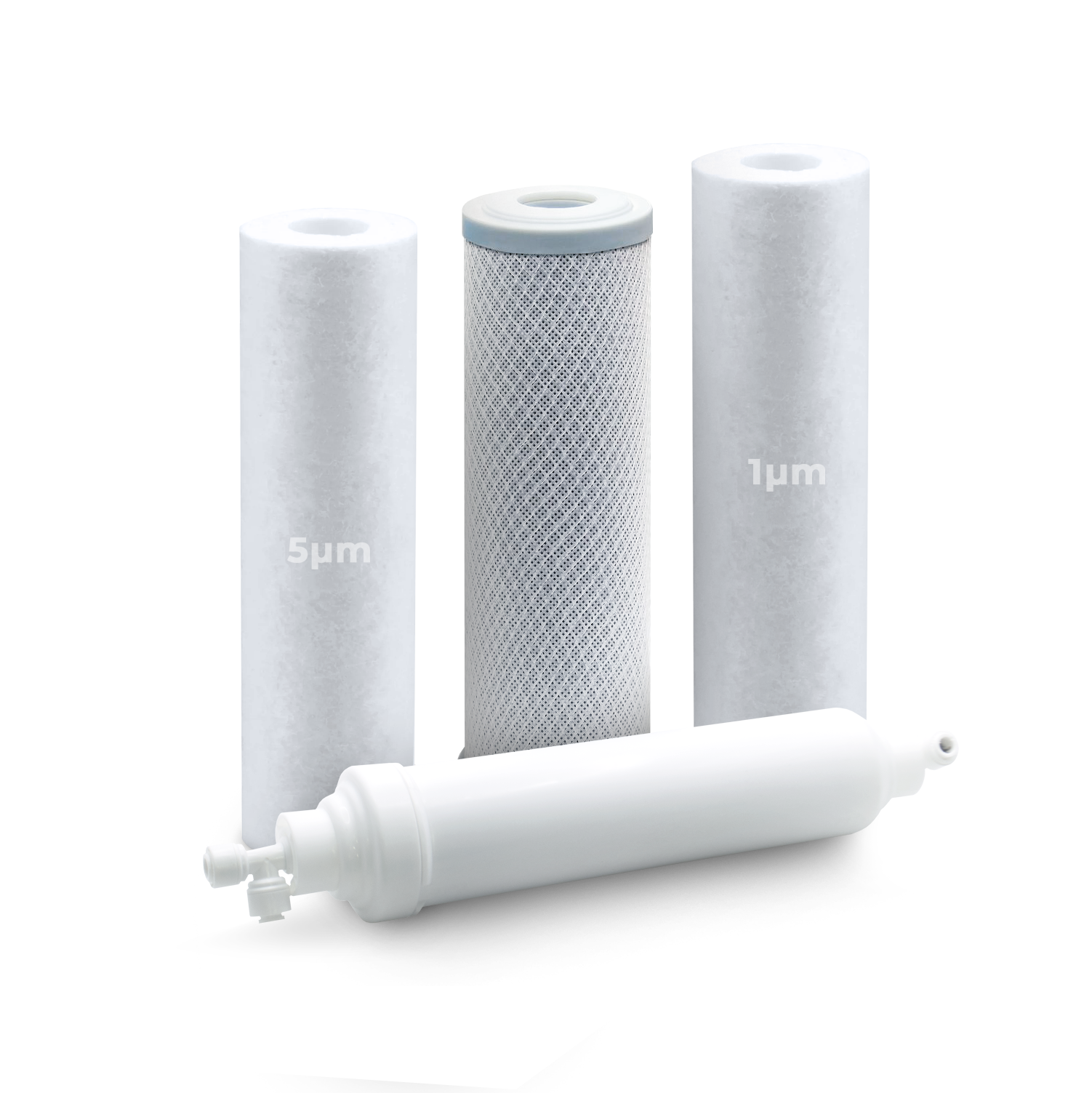 Комплект картриджів передочищення + постфільтр (12 місяців) - призначений для встановлення в системах зворотного осмосу. Основне призначення підготувати воду для подальшої фільтрації основним фільтруючим елементом - мембраною зворотного осмосу. Це досягається шляхом очищення води від механічних забруднень (розмір механічних домішок від 5 до 1 мкм), а також очищення від хлору, хлорорганічних зʼєднань, металлів, нафтопродуктів та пестицидів. Також кожні 12 місяців міняється постфільтр з активованого кокосого вугілля. Він працює після мембрани та служить для покращення органолетичних показників питної води.
