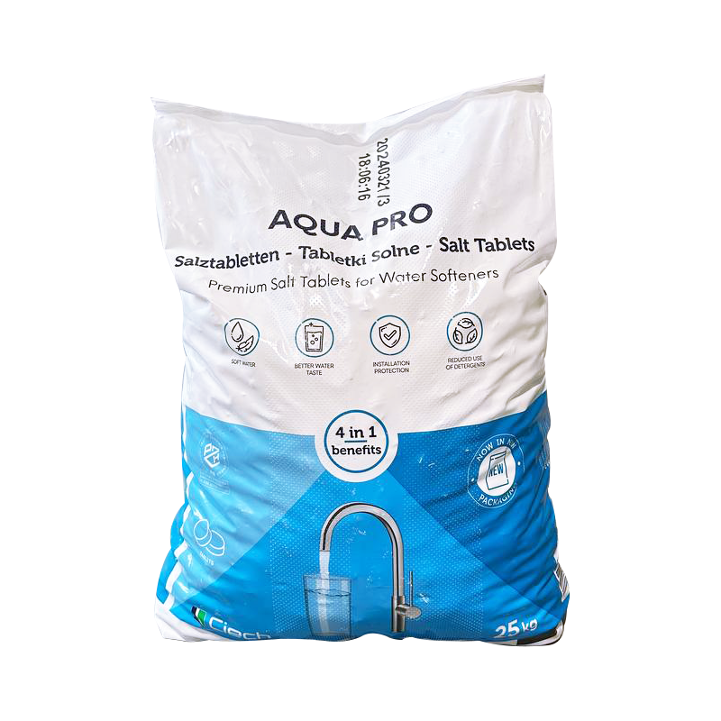 • Чистота та ефективність: Таблетована сіль виготовляється з харчової солі екстра-класу і не містить домішок, таких як йод чи антизлежувальні добавки. Висока чистота (понад 99,5% NaCl) забезпечує відсутність осаду та нальоту на стінках системи водопідготовки.