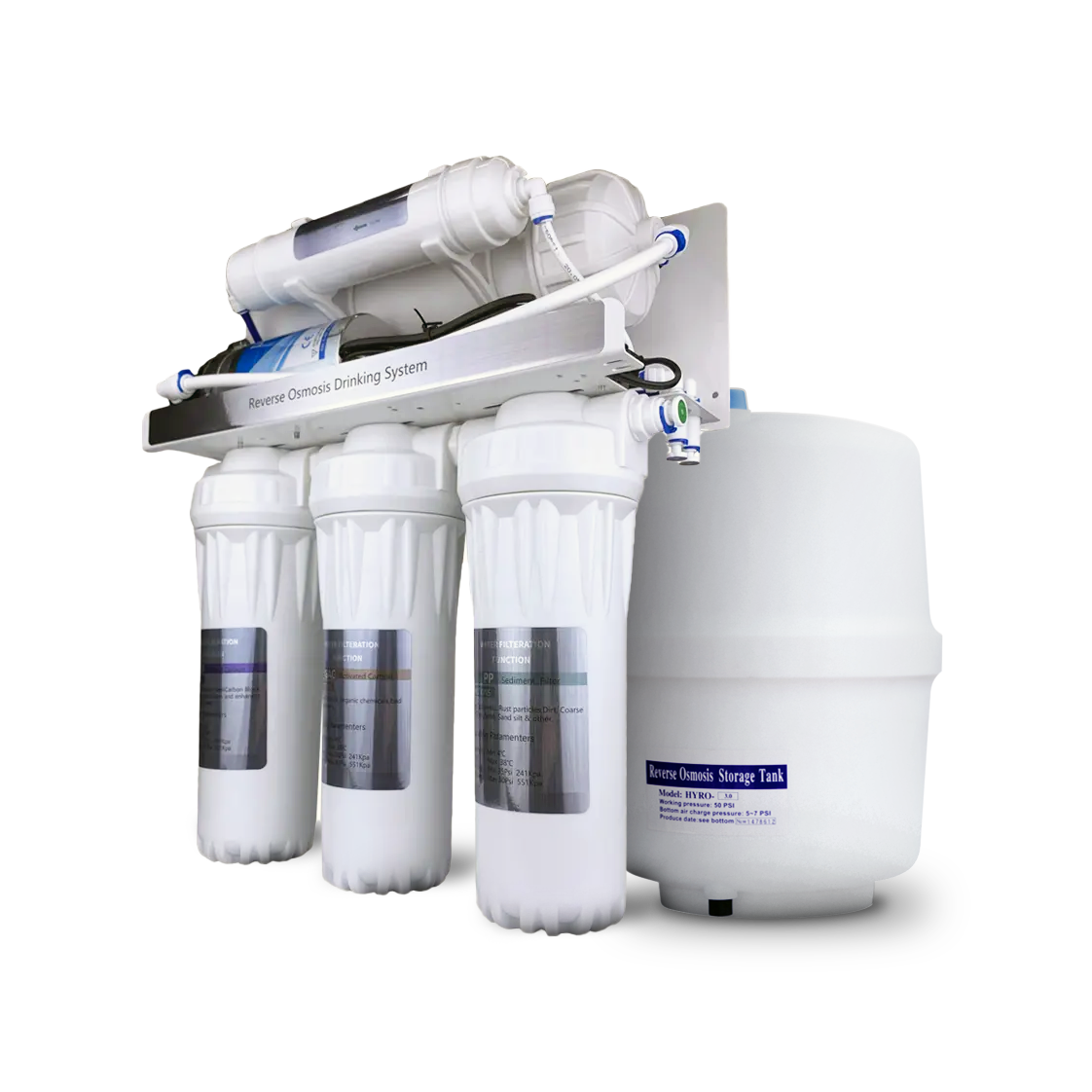В комплект даної системи входить накопичувальна ємність на 8 літрів з корисним об'ємом 5-6 літрів. Також система комплектується краном чистої води для встановлення на мийку типу «Капля».