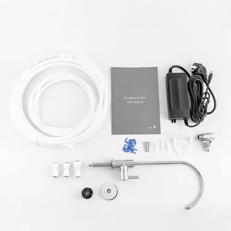 Система зворотного осмосу QR05-400 – це ультра-компактна система зворотного осмосу. Ідеальне рішення в умовах, коли потрібно зберегти максимум простору у місці встановлення! Система не потребує накопичувального баку тому що вода фільтрується в прямоточному режимі завдяки високопродуктивній мембрані на 400 галон на добу або 1.05 л/хв фільтрованої води.