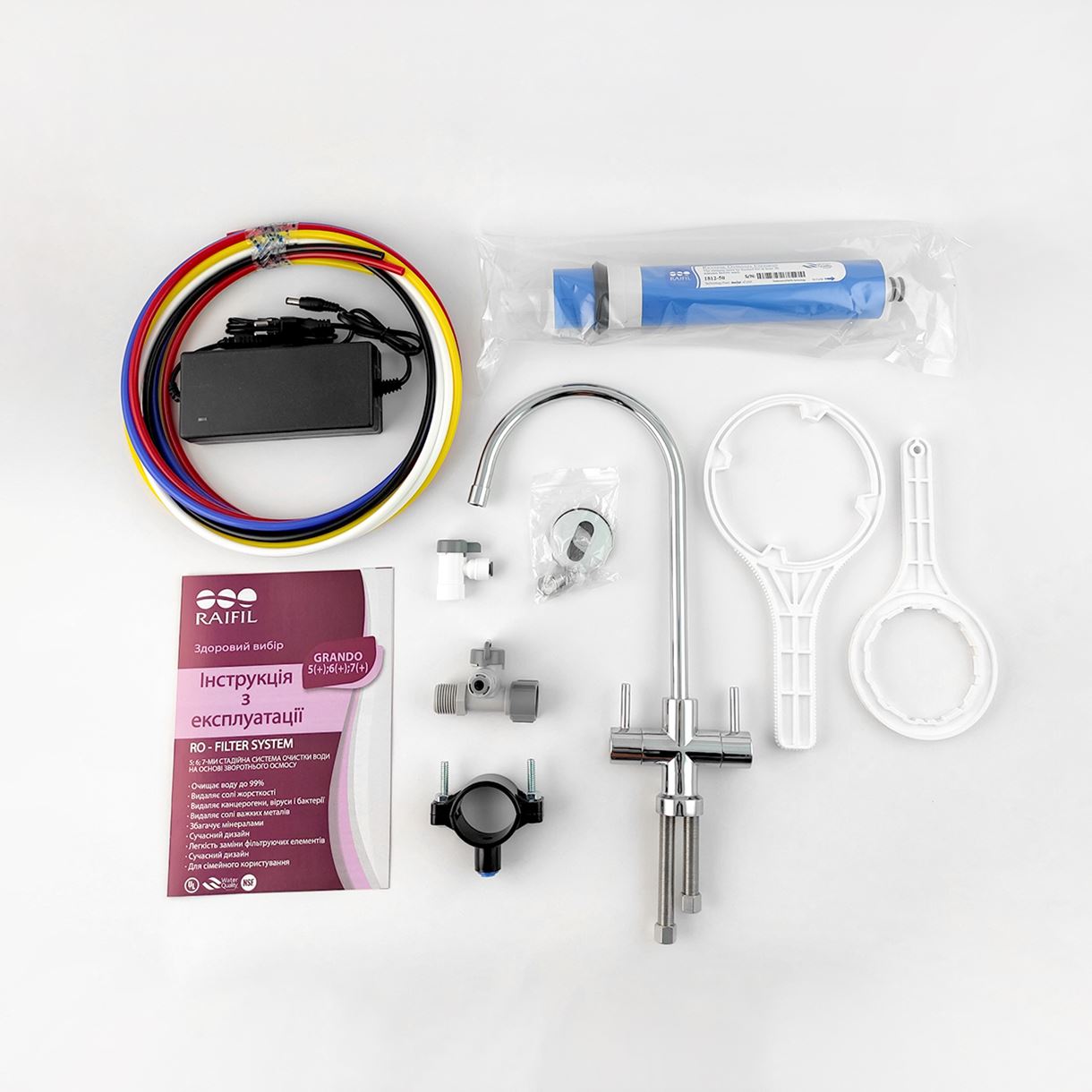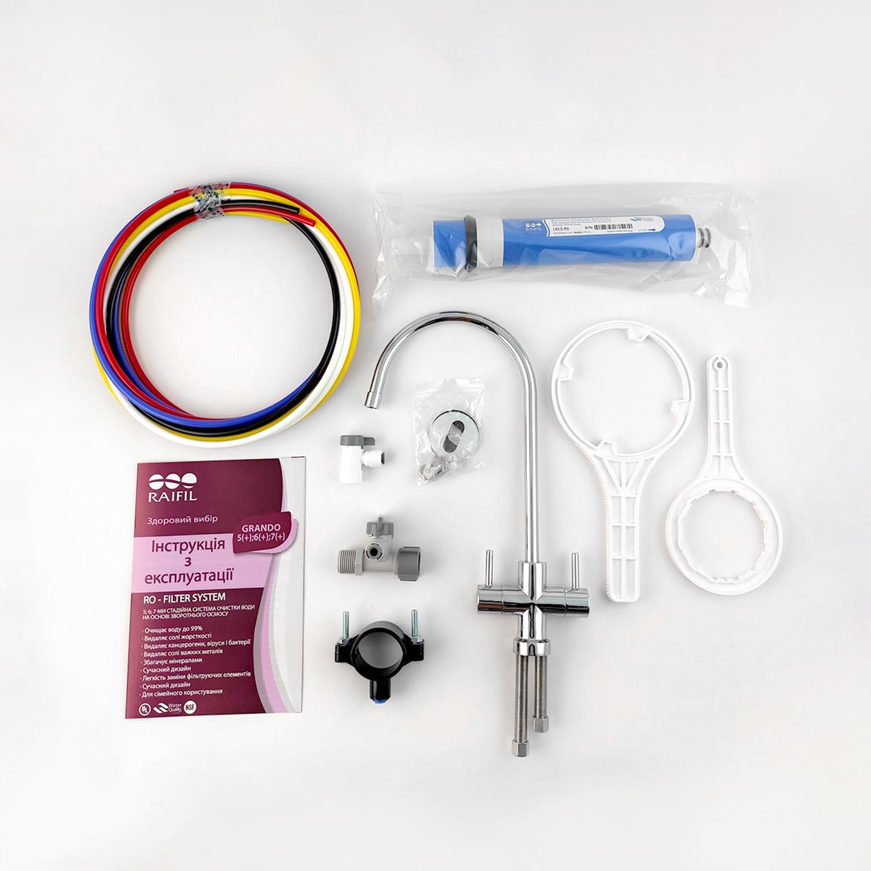 Raifil GRANDO система зворотного осмосу від перевіреного роками бренду Raifil. Цей корейский бренд працює на ринку вже багато років і робить дійсно якісні рішення у сфері водоочищення. Хоча ця система з вигляду не відрізняється від подібних систем інших брендів, Raifil GRANDO може похвалитися преміальною якістю матеріалів з яких складаються їхні системи очищення води.